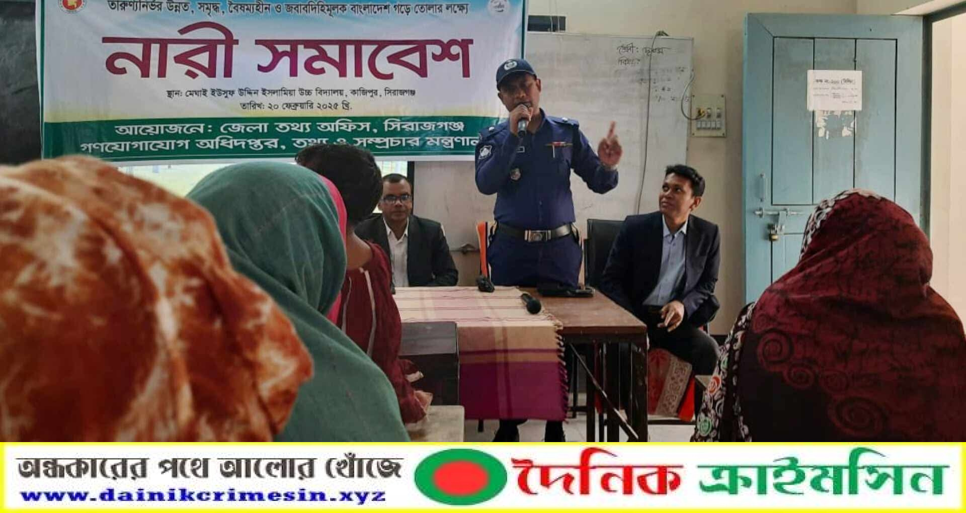 মাহমুদুল হাসান শুভ কাজিপুর (সিরাজগঞ্জ) প্রতিনিধিঃ আইন শৃংঙ্খলা রক্ষায় সিরাজগঞ্জের কাজিপুর থানা পুলিশের সাড়াশি অভিযান অব্যাহত রয়েছে। একই সাথে সচেতনতা বাড়াতে স্কুল-কলেজের শিক্ষার্থীদের মাঝে আইন শৃংঙ্খলা নিয়ে আলোচনা করছেন। নারীদের সচেতন করতে নারী সমাবেশে বক্তব্য রাখছেন ওসি।