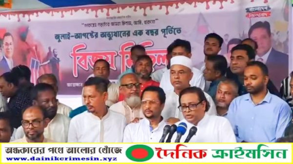 “আওয়ামী ফ্যাসিবাদের পতন ও ছাত্র-জনতার বিজয়ের বর্ষপূর্তি পালন উপলক্ষে বিয়ানীবাজারে জাসাস ও বিএনপির বর্ণাঢ্য র‍্যালি ও আলোচনা সভা” - দৈনিক ক্রাইমসিন