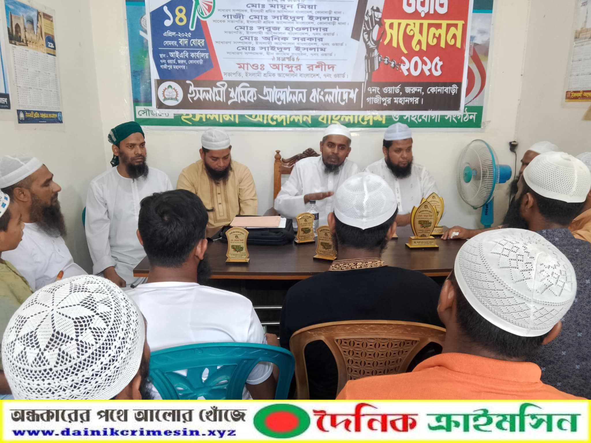 সোমবার (১৪ এপ্রিল) বাদ যোহর ৭.নং ওয়ার্ড জরুন কোনাবাড়ীতে ইসলামী আন্দোলন বাংলাদেশ নিজ অফিসে শ্রমিক আন্দোলন বাংলাদেশ গাজীপুর মহানগরে সহ-সভাপতি মাওলানা আব্দুল রশিদ সাহেব সভাপতিত্বে কমিটি গঠন উপলক্ষে আয়োজিত এ সম্মেলন অনুষ্ঠিত হয়।
