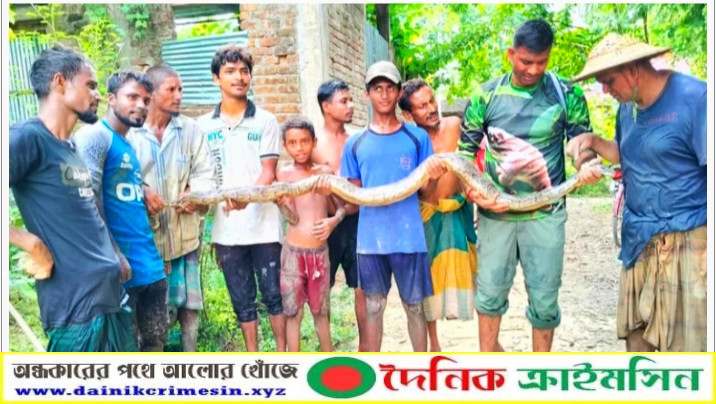 কমলগঞ্জে ধানখেত থেকে আহত অজগর উদ্ধার - দৈনিক ক্রাইমসিন