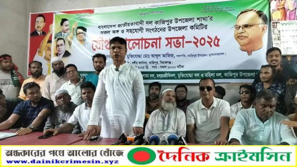 বাংলাদেশ জাতীয়তাবাদী দল (বিএনপি) সিরাজগঞ্জ জেলার কাজিপুর উপজেলা শাখার উদ্যোগে অঙ্গ ও সহযোগী সংগঠনের অংশগ্রহণে “যৌথ আলোচনা সভা–২০২৫” অনুষ্ঠিত হয়েছে।
