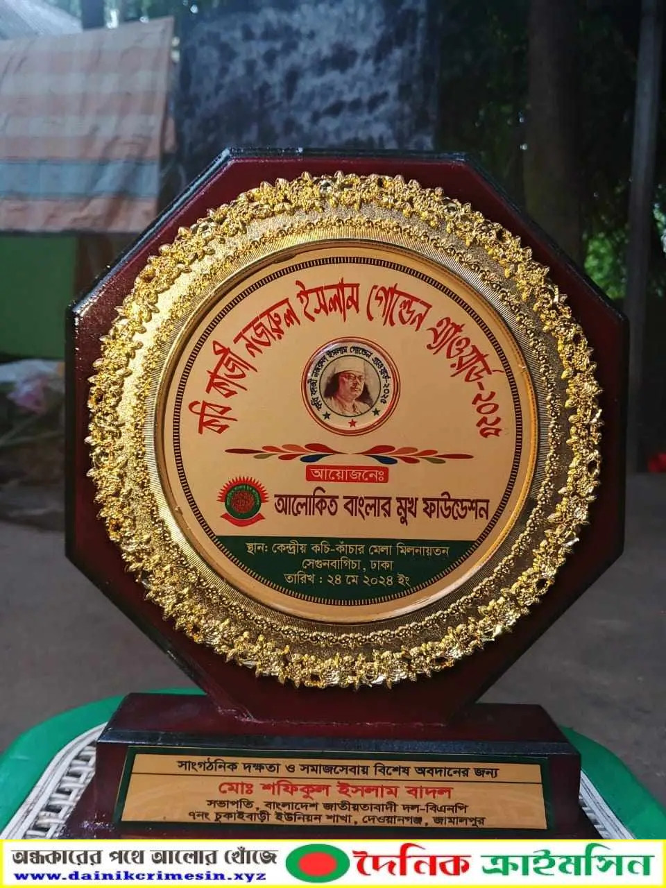 কাজী নজরুল ইসলাম গোল্ডেন এ্যাওয়ার্ড পেলেন , ইউনিয়ন বিএনপির সভাপতি মোঃ শফিকুল ইসলাম বাদল - দৈনিক ক্রাইমসিন