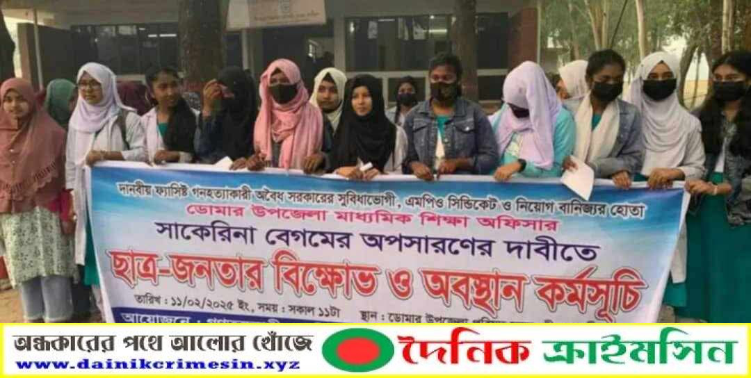 ডোমারে মাধ্যমিক শিক্ষা কর্মকর্তার অপসারণের দাবিতে অবস্থান ও বিক্ষোভ কর্মসূচি