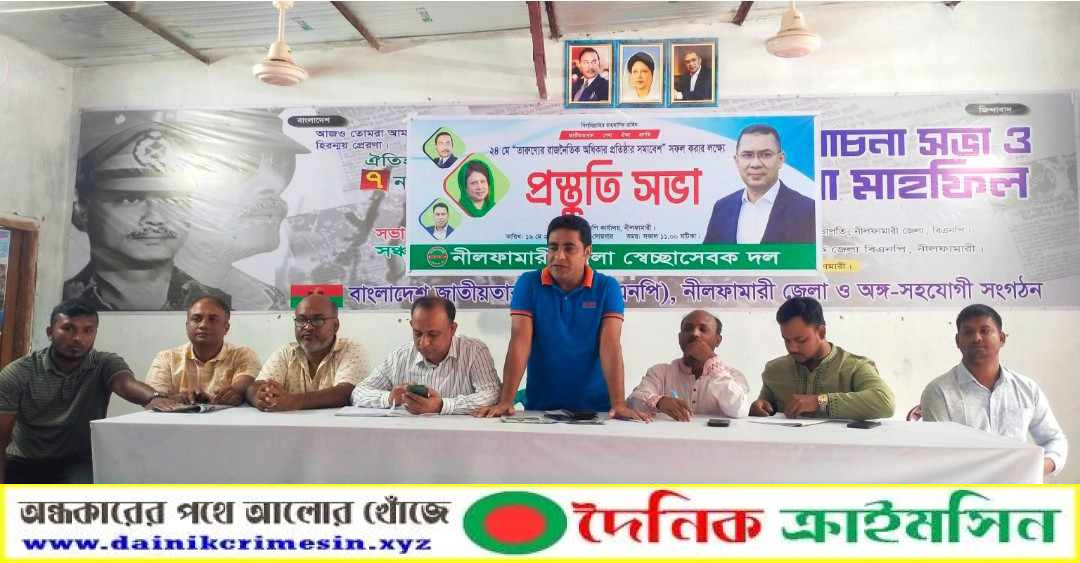 তারুণ্যের রাজনৈতিক অধিষ্ঠির অধিকার প্রতিষ্ঠা উপলক্ষে নীলফামারী জেলা স্বেচ্ছাসেবক দলের প্রস্তুতি সভা - দৈনিক ক্রাইমসিন