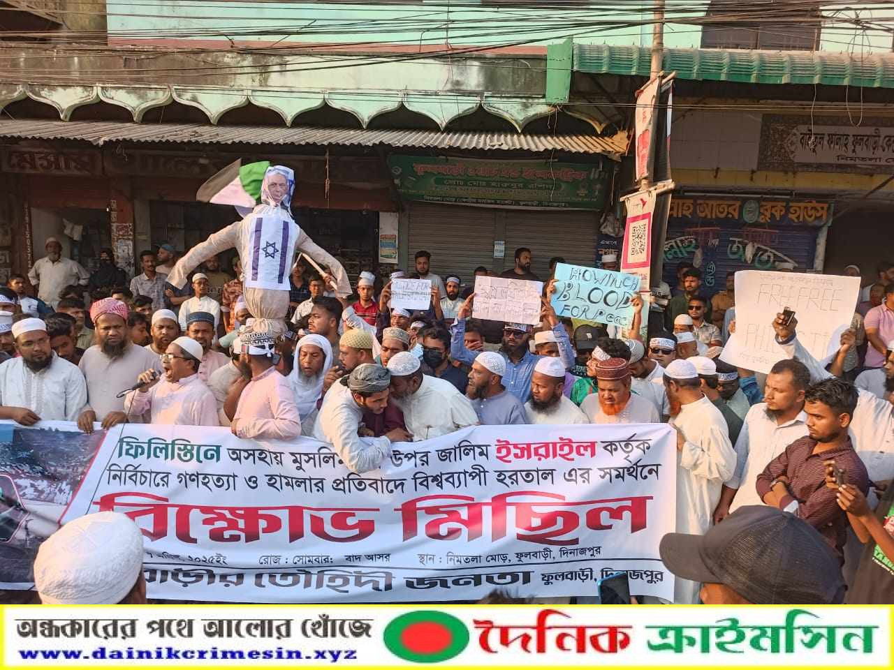 ফিলিস্তিনে ইসরায়েলি গণহত্যা বন্ধ ও স্বাধীন ফিলিস্তিনের দাবিতে ফিলিস্তিনের ‘ওয়ার্ল্ড স্টপ ফর গাজা’ কর্মসূচির প্রতি সমর্থন জানিয়ে দিনাজপুরে ফুলবাড়ীতে বিক্ষোভ মিছিল ও প্রতিবাদ সমাবেশ অনুষ্ঠিত হয়েছে।