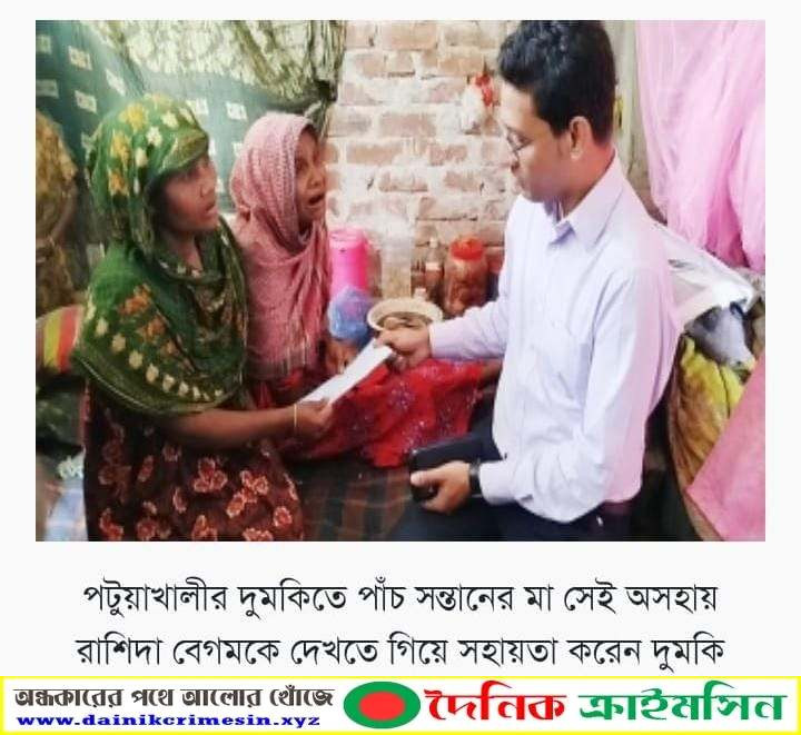 পটুয়াখালী জেলার দুমকি উপজেলায়, পাঁচ সন্তানের মা সেই অসহায় রাশিদা বেগমকে দেখতে গিয়ে সহায়তা করেন দুমকি উপজেলা নির্বাহী অফিসার মোঃ শাহীন মাহমুদ।
