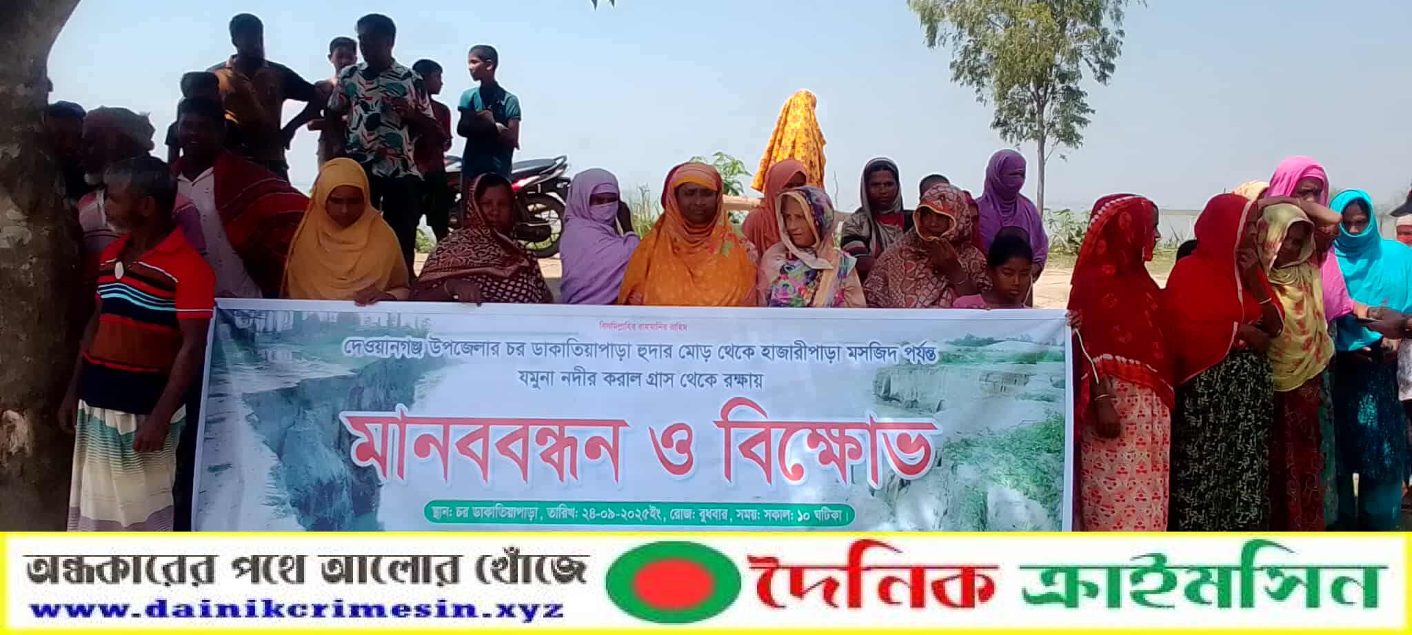 জামালপুরের দেওয়ানগঞ্জে চিকাজানী ইউনিয়নের চর ডাকাতিয়া পাড়া, হাজারিয়া পাড়া, খোলাবাড়ি ও বড়খাল এলাকাবাসী স্থায়ী বাঁধের দাবিতে মানববন্ধন ও বিক্ষোভ ।