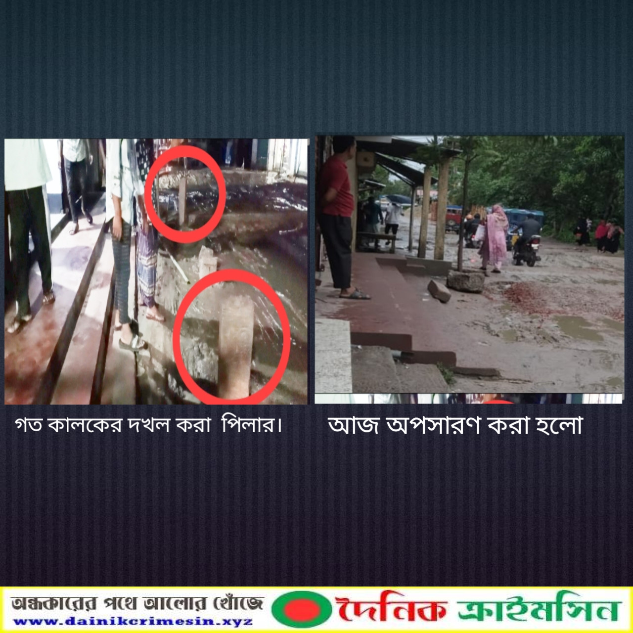 দৈনিক ক্রাইমসিন পত্রিকায় সংবাদ প্রকাশের পর বিষয়টি প্রশাসনের দৃষ্টিগোচর হয়। এলাকাবাসীর অভিযোগের প্রেক্ষিতে স্থানীয় প্রশাসন দ্রুত পদক্ষেপ গ্রহণ করে এবং সড়কের মাঝে বসানো আরসিসি পিলারগুলো অপসারণ করা হয়। এই সড়কটি তেমুনিয়া থেকে জগদীশপুর পর্যন্ত যোগাযোগের অন্যতম গুরুত্বপূর্ণ পথ, যা বহুদিন ধরে খানা-খন্দে ভরা ও বেহাল অবস্থায় ছিল।