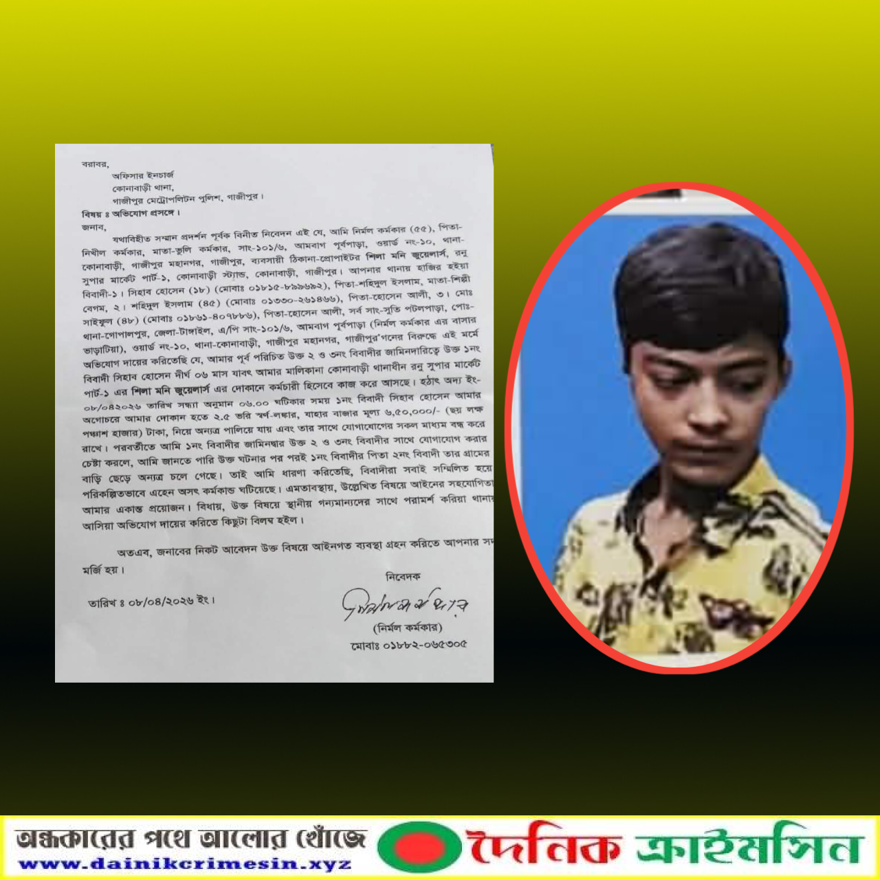 দোকান থেকে চুরি হয়ে গেল ৬ লক্ষ ৫০ হাজার টাকার গহনা - দৈনিক ক্রাইমসিন