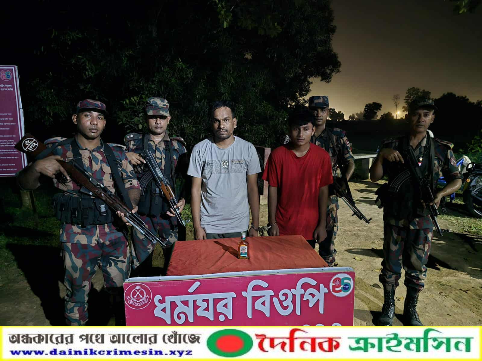 হবিগঞ্জ জেলার মাধবপুর উপজেলার ধর্মঘর সীমান্ত এলাকা থেকে ভারতীয় ১ বোতল মদসহ দুই যুবককে আটক করেছে বিজিবি সদস্যরা।
