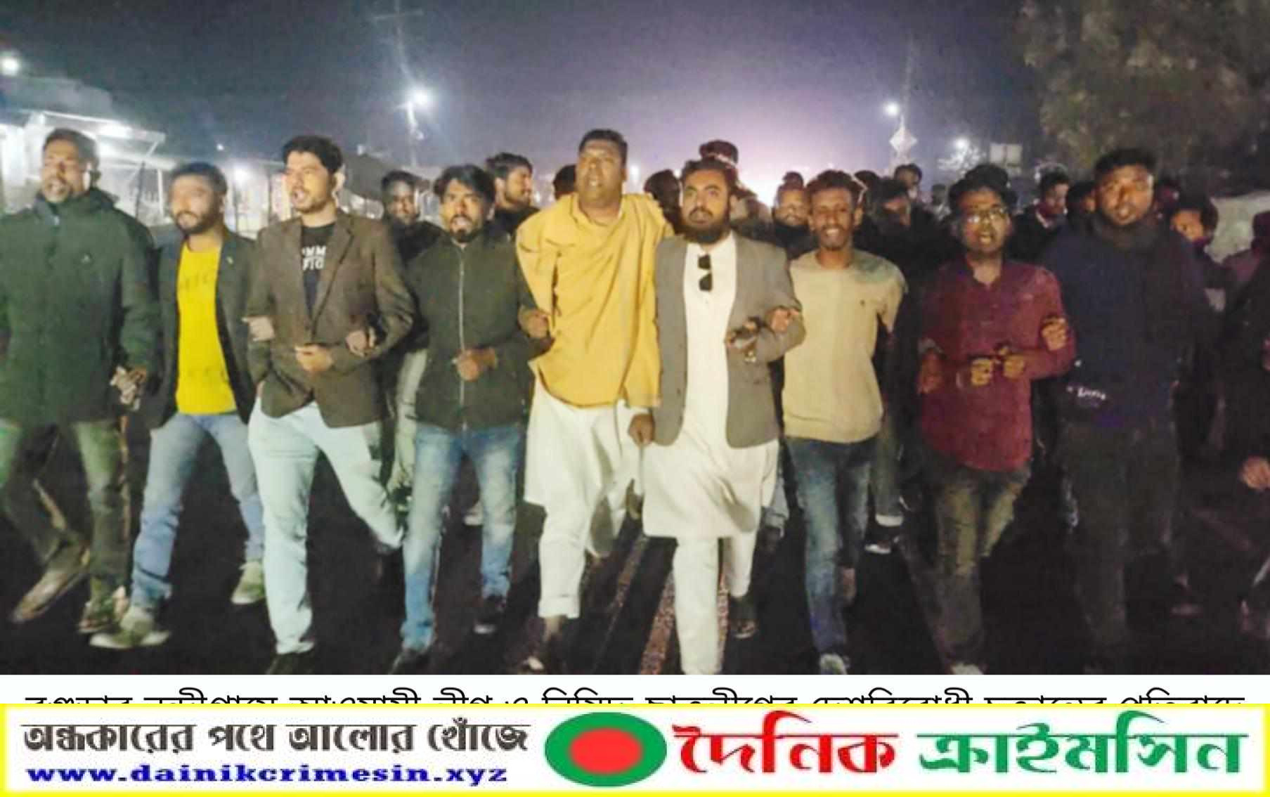 গত শুক্রবার রাতে একটি বিক্ষোভ মিছিল পৌর সদরের বিভিন্ন সড়ক প্রদক্ষিণ করে। উপজেলা স্বেচ্ছাসেবক দলের আহবায়ক আবু বক্কর সিদ্দিক রঙিন ও সদস্য সচিব আব্দুল হাকিম রিন্টুর নেতৃত্বে নেতাকর্মীরা ঘন্টাব্যাপী আওয়ামী বিরোধী স্লোগান দেয়। এসময় পৌর স্বেচ্ছাসেবক দলের সদস্য সচিব সিয়ামুল হক রাব্বি, পৌর ছাত্রদলের সাধারণ সম্পাদক আরএইচ নুরনবীসহ বিভিন্ন পর্যায়ের নেতাকর্মী উপস্থিত ছিলেন।
