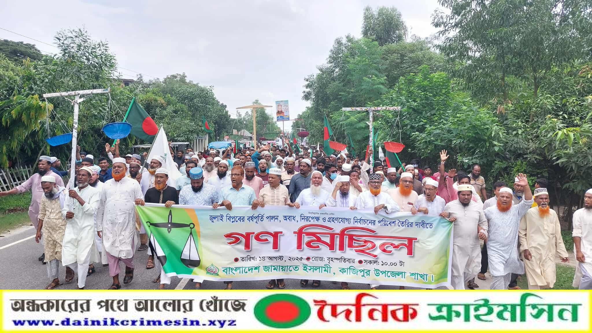 নিরপেক্ষ নির্বাচনের দাবিতে কাজিপুরে জামায়াতের গণমিছিল - দৈনিক ক্রাইমসিন