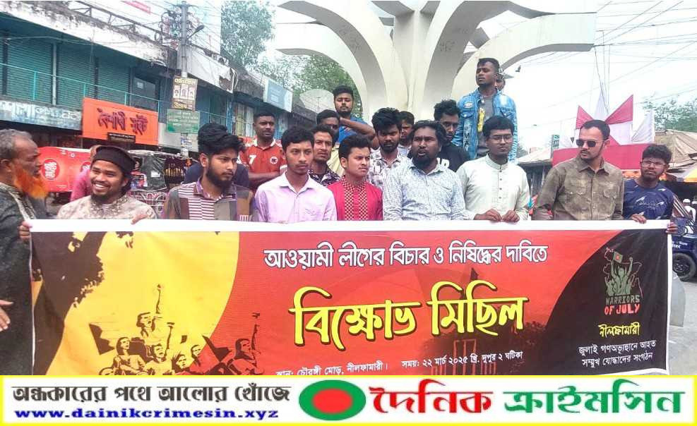 নীলফামারীতে "ওয়ারিয়র্স অফ জুলাই" এর আওয়ামী লীগের বিচার ও নিষিদ্ধের দাবিতে বিক্ষোভ। - দৈনিক ক্রাইমসিন