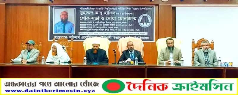 পটুয়াখালী বিজ্ঞান ও প্রযুক্তি বিশ্ববিদ্যালয় (পবিপ্রবি)র শারীরিক শিক্ষা বিভাগের উপ -পরিচালক মুহাম্মদ আবু হানিফ এর মৃত্যু উপলক্ষে শোকসভা ও দোয়া মোনাজাত অনুষ্ঠিত হয়।