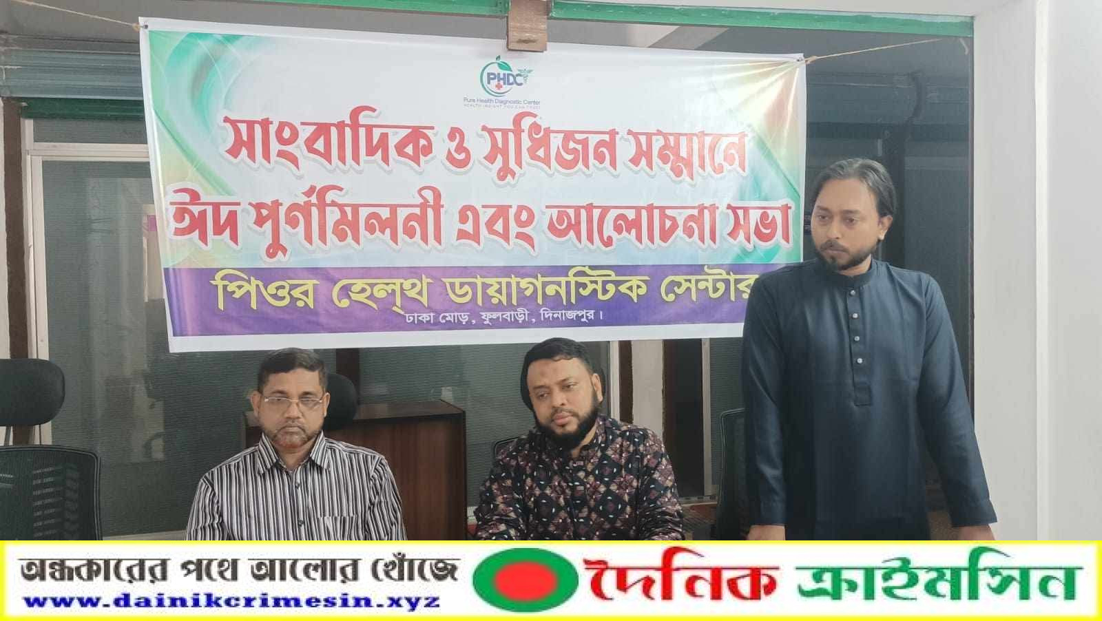 দিনাজপুরের ফুলবাড়ীতে পিওর হেল্থ ডায়াগনস্টিক সেন্টারের আয়োজনে সাংবাদিকদের সাথে ঈদপূনর্মিলনী ও আলোচনা সভা অনুষ্ঠিত হয়েছে।