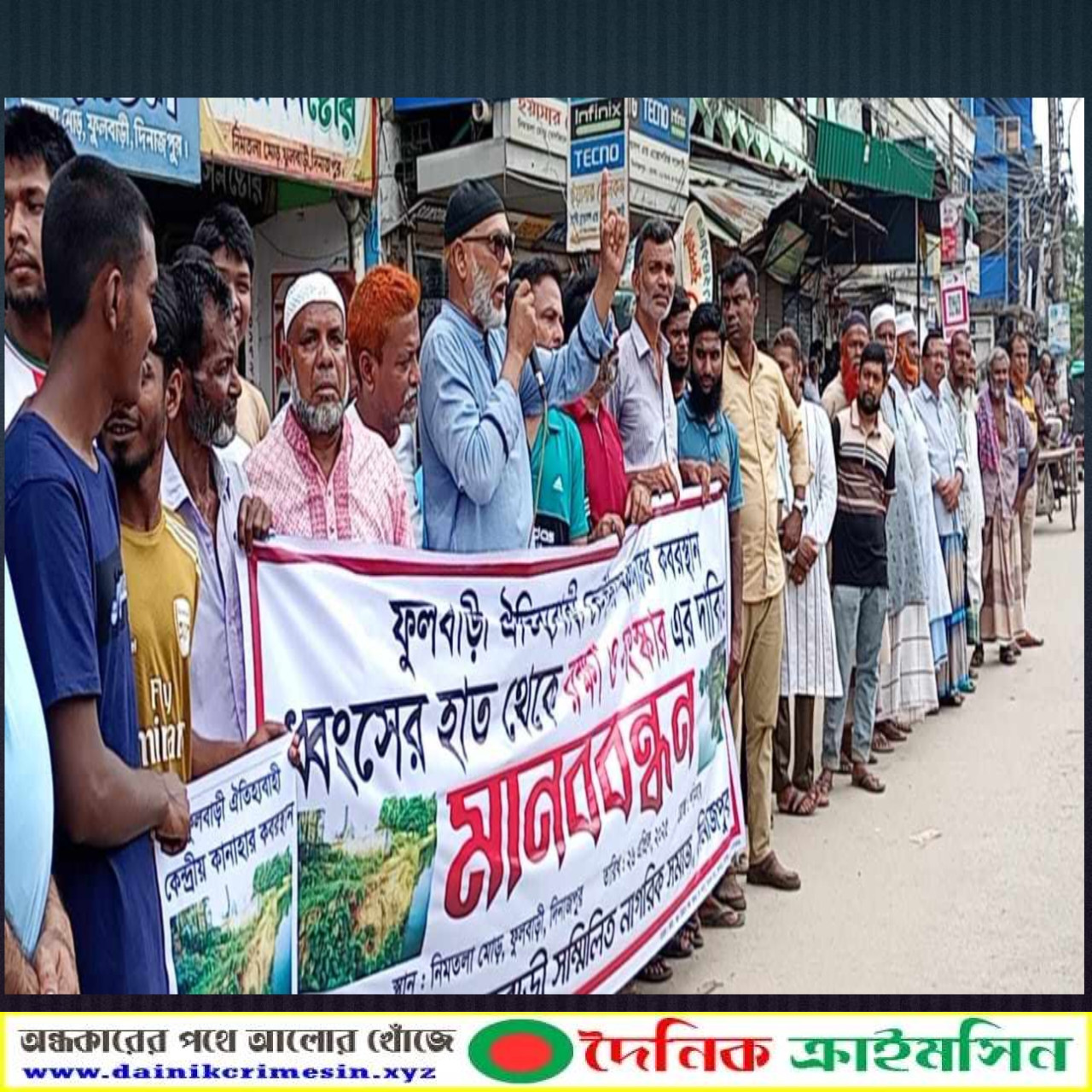 ফুলবাড়ী কেন্দ্রীয় কবরস্থান ভাঙ্গনের হাত থেকে রক্ষার দাবিতে মানববন্ধন - দৈনিক ক্রাইমসিন