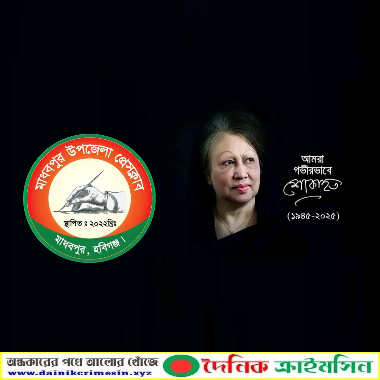বাংলাদেশের তিনবারের নির্বাচিত সাবেক প্রধানমন্ত্রী ও বাংলাদেশ জাতীয়তাবাদী দলের (বিএনপি) চেয়ারপারসন, আপোষহীন নেত্রী বেগম খালেদা জিয়ার ইন্তেকালে গভীর শোক ও দুঃখ প্রকাশ করেছে মাধবপুর উপজেলা প্রেসক্লাব।