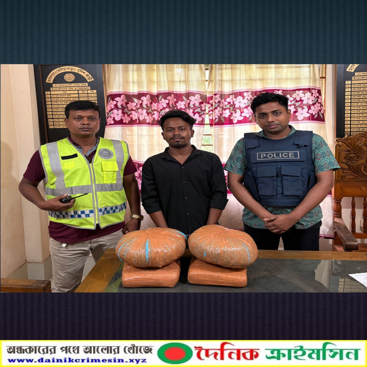 চেকপোস্ট চলাকালীন সন্দেহভাজন হিসেবে নয়ন মণ্ডল নামে এক ব্যক্তিকে আটক করা হয়। তার কাঁধে ঝুলানো ব্যাগ তল্লাশি করে ৮ কেজি গাঁজা উদ্ধার করা হয়।