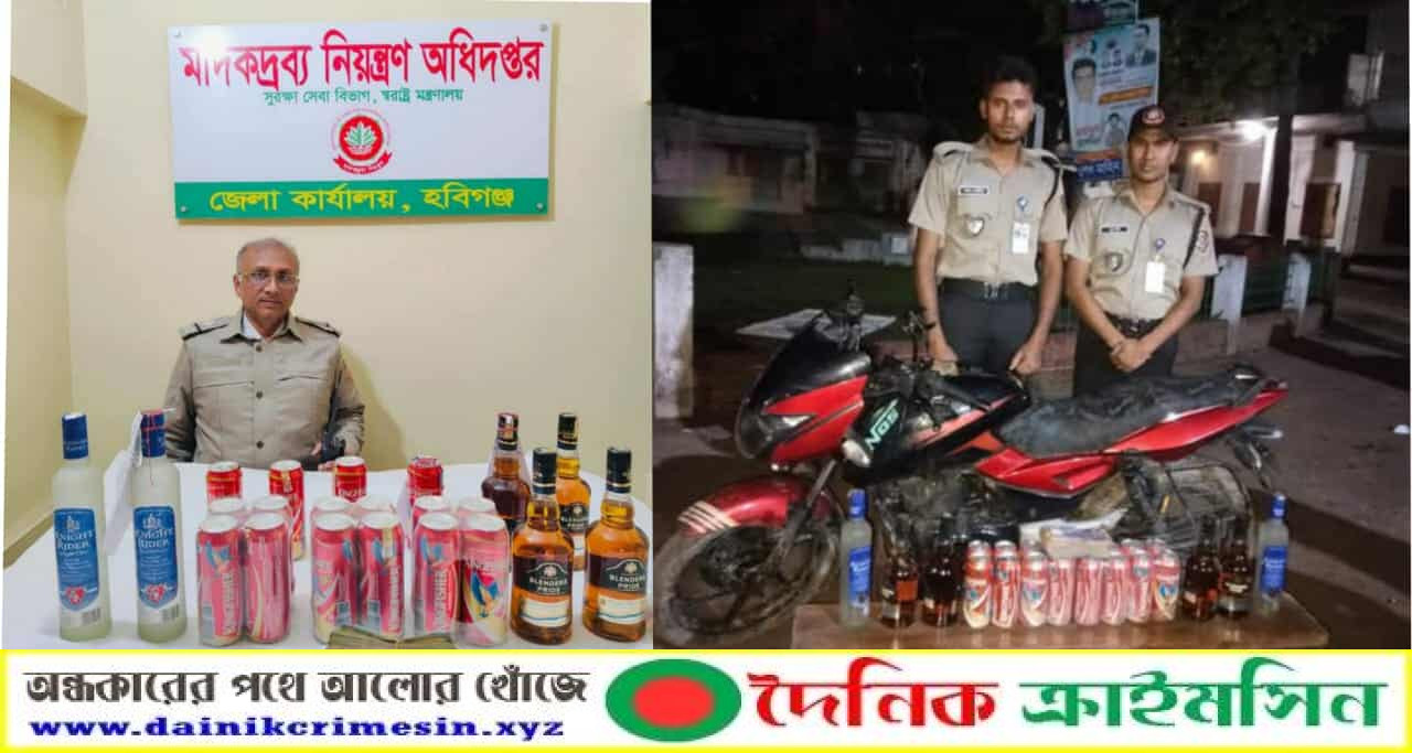 মাধবপুরে মোটরসাইকেল সহ বিদেশী মদ জব্দ - দৈনিক ক্রাইমসিন