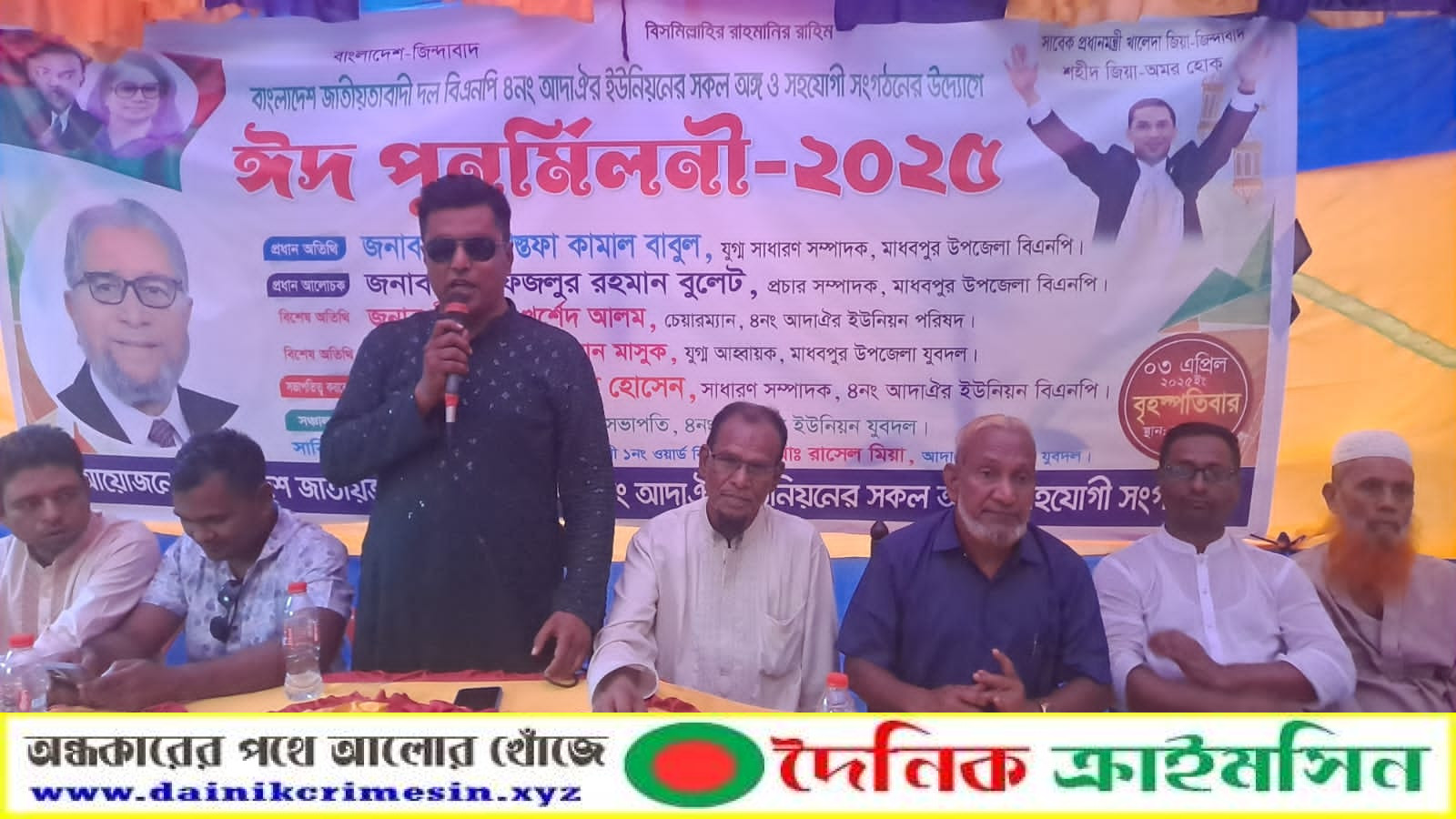 হবিগঞ্জ জেলার মাধবপুর উপজেলার ৩ এপ্রিল রোজ বৃহস্পতিবার বিকেলে বাংলাদেশ জাতীয়তাবাদী দল বিএনপি ৪নং আদাঐর ইউনিয়নের সকল অঙ্গ ও সহযোগী সংগঠনের উদ্যোগে ঈদ পূর্ণমিলনী অনুষ্ঠিত হয়েছে।