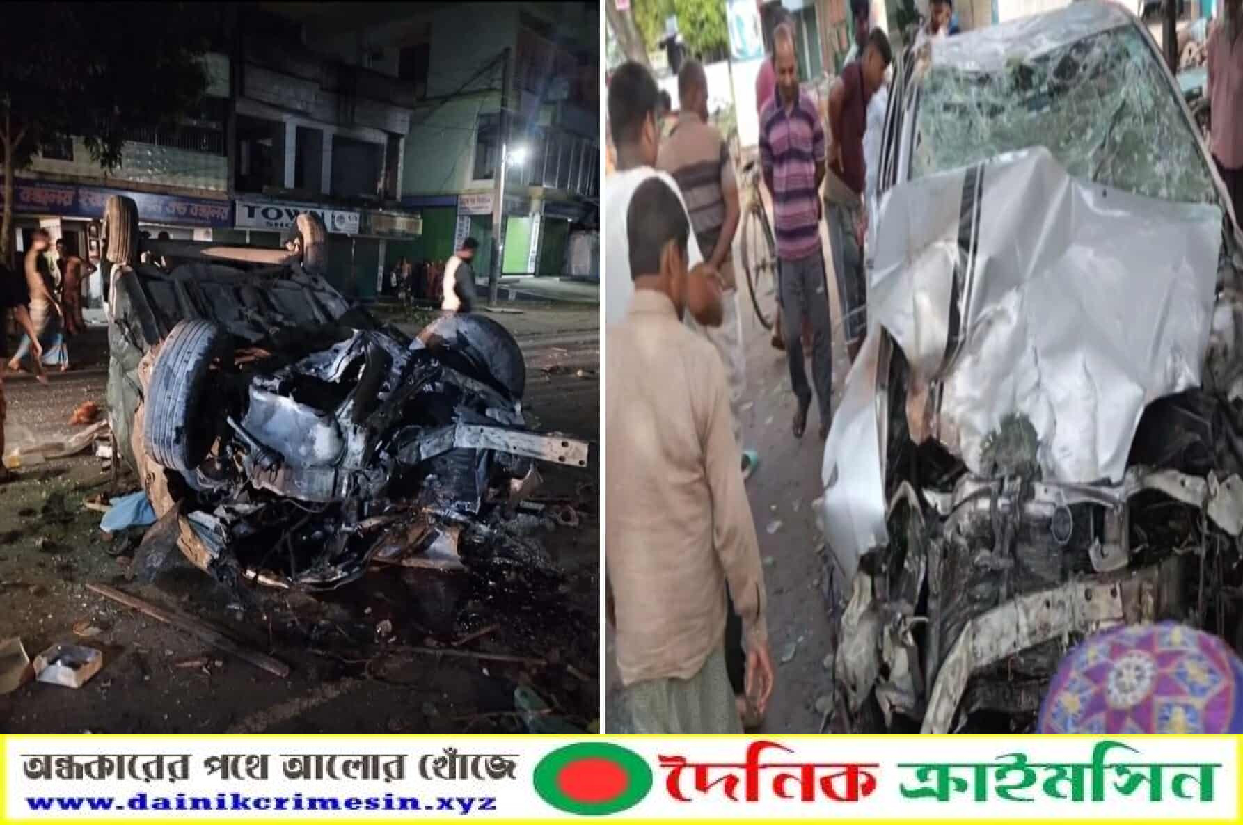 ধাক্কার পর গাড়িটি দুমড়ে মুচড়ে ধুলু মিয়ার চায়ের দোকানের ওপর আছড়ে পড়ে, দোকানটি সম্পূর্ণ ভেঙে যায়।