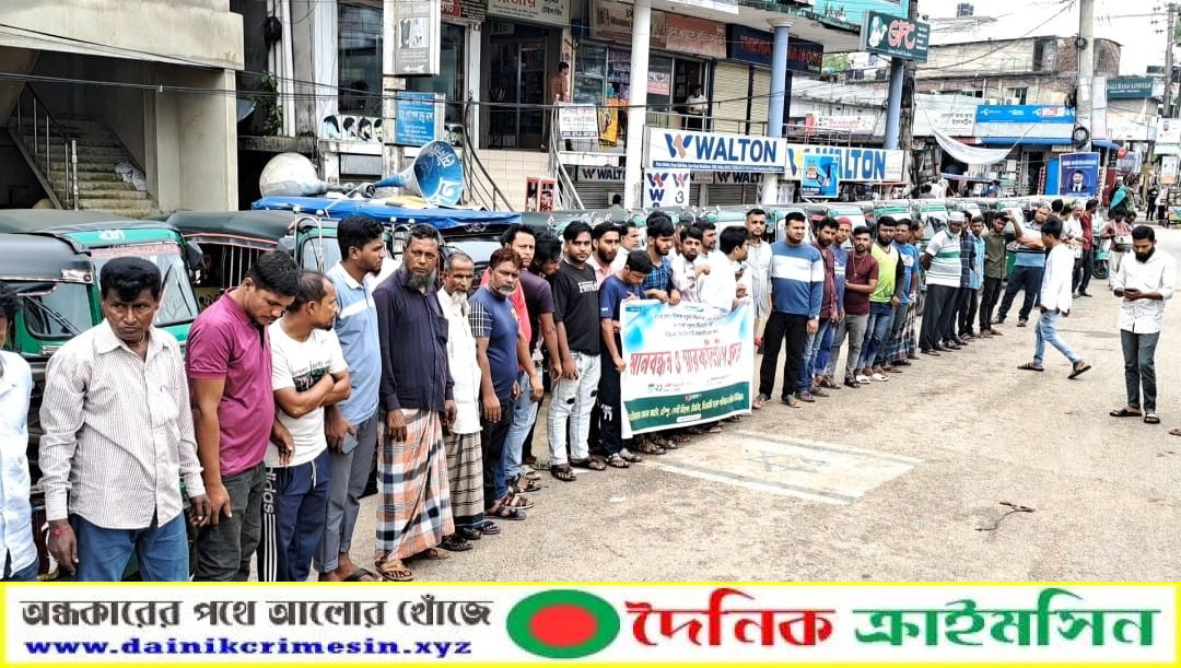 মৌলভীবজার ৭ উপজেলায় সড়ক পরিবহন শ্রমিক ইউনিয়ন ২৩৫৯ এর মানববন্ধন - দৈনিক ক্রাইমসিন