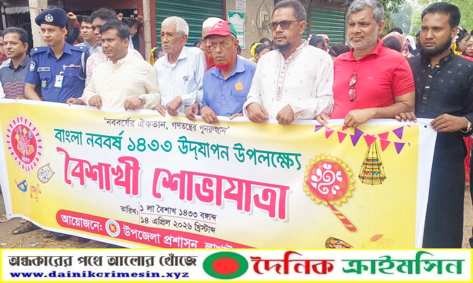 এর পূর্বে সকাল ৯ ঘটিকায় উপজেলা পরিষদ প্রাঙ্গণ থেকে উপজেলা নির্বাহী কর্মকর্তা ইউএনও সৈয়দ মুরাদ ইসলাম এর নেতৃত্বে একটি বৈশাখী শোভাযাত্রা উপজেলার বিভিন্ন সড়ক প্রদক্ষিণ করে পুনরায় উপজেলা প্রাঙ্গণে এসে শেষ হয়।