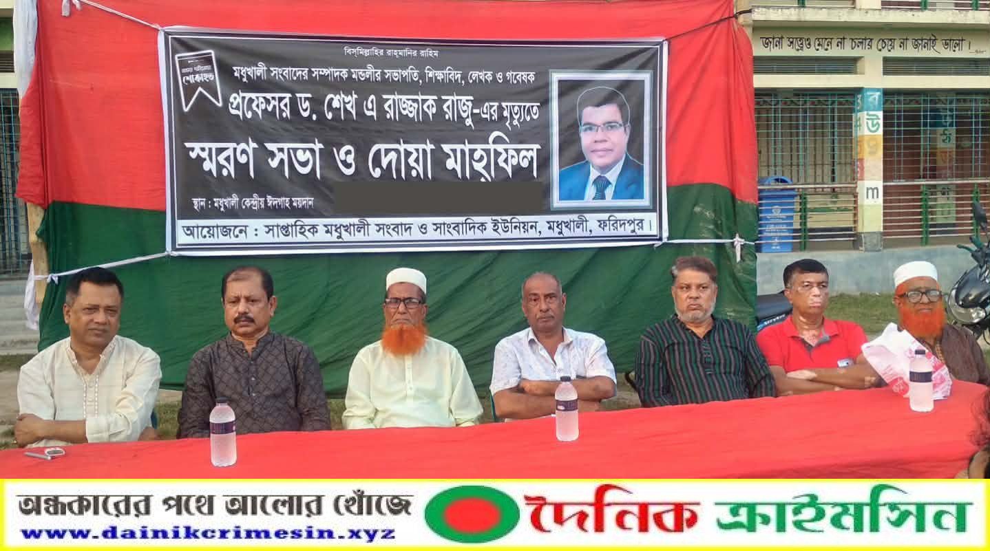 ফরিদপুরের মধুখালীতে বিশিষ্ট শিক্ষাবিদ, লেখক ও গবেষক, সাপ্তাহিক মধুখালী সংবাদ-এর সম্পাদকমণ্ডলীর সভাপতি অধ্যাপক ড. শেখ আব্দুর রাজ্জাকের মৃত্যুতে এক স্মরণসভা ও দোয়া মাহফিল অনুষ্ঠিত হয়েছে।