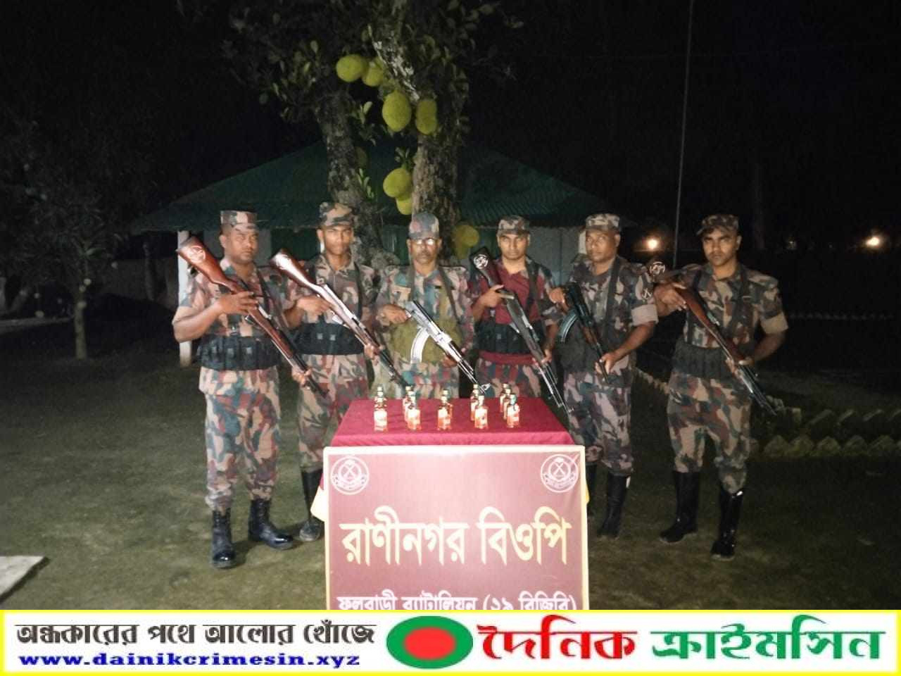 ৩১ মে শনিবার গোপন সংবাদের ভিত্তিতে ফুলবাড়ী ব্যাটালিয়ন (২৯ বিজিবি) এর অধীনস্থ মোহনপুর ব্রীজ বিওপি, রাণীনগর বিওপি এবং বিরামপুর বিশেষ ক্যাম্প এর টহলদল কর্তৃক দায়িত্বপূর্ণ সীমান্ত এলাকায় চোরাচালান প্রতিরোধ অভিযান পরিচালনা করে মালিকবিহীন অবস্থায় ১৪ বোতল ভারতীয় মদ, ১৪ বোতল ফেন্সিডিল এবং ২৩০ বোতল বাংলাদেশী যৌন উত্তেজক সিরাপ উদ্ধার করতে সক্ষম হয়।
