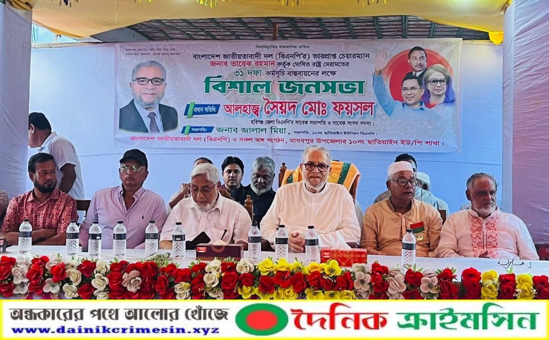 ৩১ দফা কর্মসূচিই দেশের মুক্তির পথ — মাধবপুরে বিএনপির জনসভায় সৈয়দ মোহাম্মদ ফয়সল - দৈনিক ক্রাইমসিন