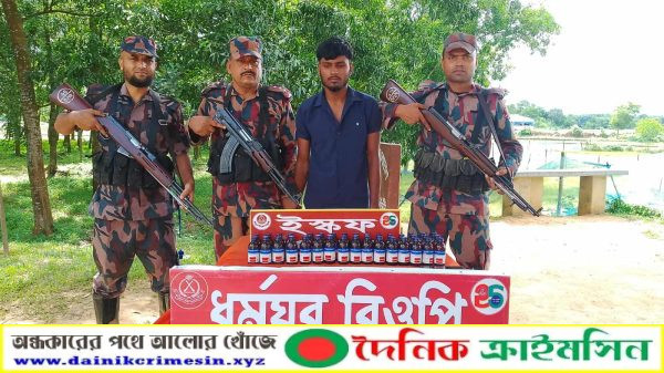 মাধবপুরে ৫০ বোতল ইস্কফসহ যুবক আটক করেছে বিজিবি।