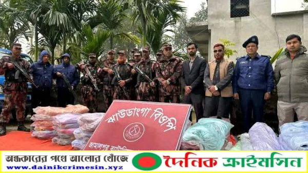 দেওয়ানগঞ্জ জামালপুর প্রতিনিধি: জামালপুরের দেওয়ানগঞ্জ উপজেলায় সীমান্ত এলাকায় চোরাচালান প্রতিরোধে বিশেষ টহল অভিযান চালিয়ে বিপুল পরিমাণ ভারতীয় থান কাপড় জব্দ করেছে জামালপুর ব্যাটালিয়ন (বিজিবি)। এ ঘটনায় সীমান্তবর্তী এলাকায় চোরাচালান কার্যক্রমে