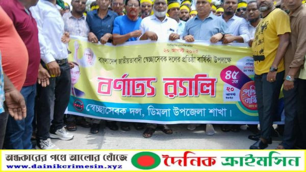 মোঃ বাদশা প্রামানিকনীলফামারি প্রতিনিধি: নীলফামারীর ডিমলায় বাংলাদেশ জাতীয়বাদী স্বেচ্ছাসেবক দলের ৪৫ তম প্রতিষ্ঠা বার্ষিকী” উপলক্ষে এক বর্ণাঢ্য র্যালী আলোচনা সভা অনুষ্ঠিত হয়েছে। বুধবার (২০ আগস্ট) সকালে নীলফামারির ডিমলা উপজেলা বিএনপি