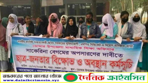 ডোমারে মাধ্যমিক শিক্ষা কর্মকর্তার অপসারণের দাবিতে অবস্থান ও বিক্ষোভ কর্মসূচি মোঃ বাদশা প্রামানিক নীলফামারী প্রতিনিধিঃ দানবীয় ফ্যাসিস্ট গণহত্যাকারী অবৈধ সরকারের সুবিধাভোগী, এমপিও সিন্ডিকেট ও নিয়োগ বাণিজ্যের হোতা নীলফামারীর ডোমার উপজেলা